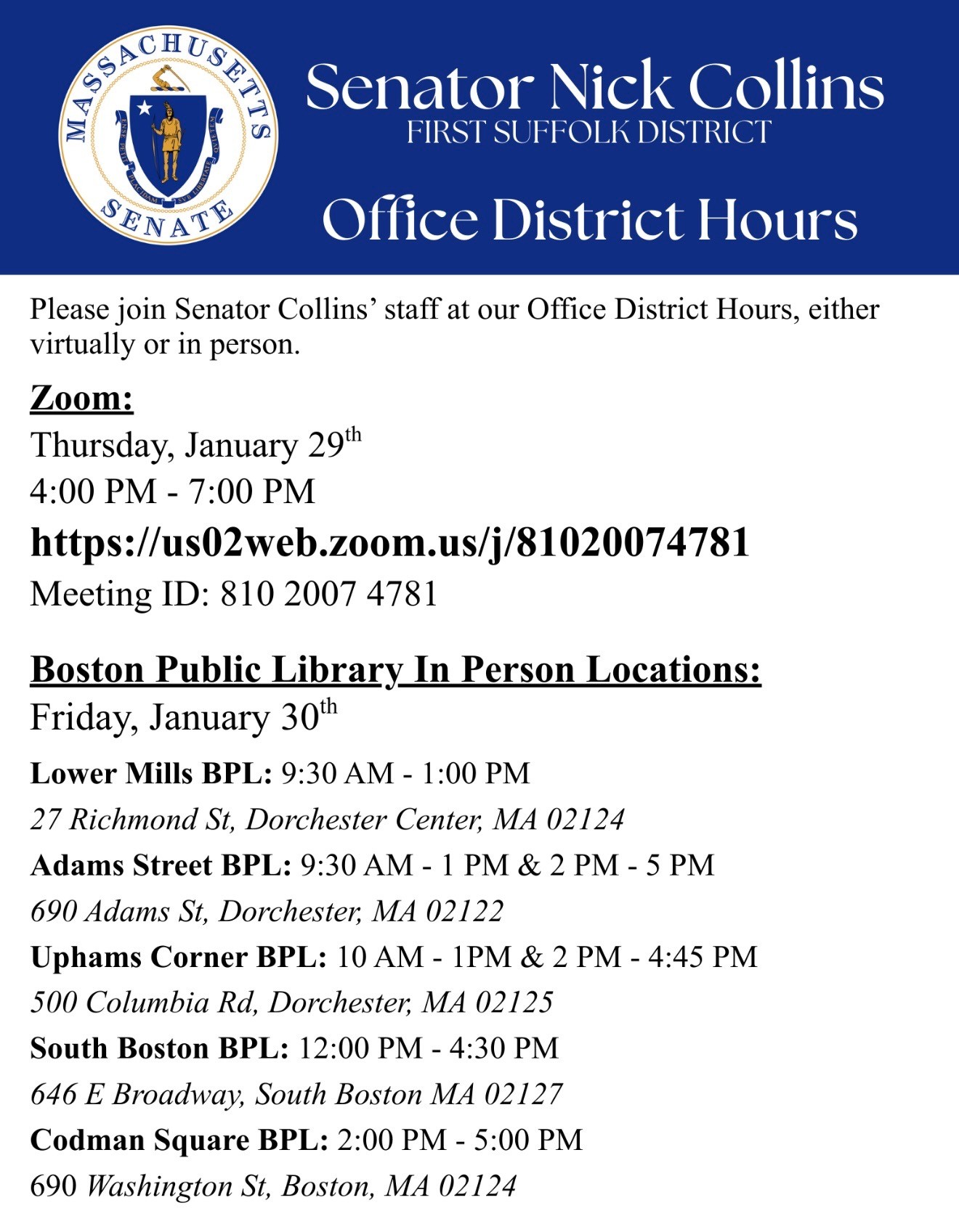 Massachusetts 1st Suffolk District.